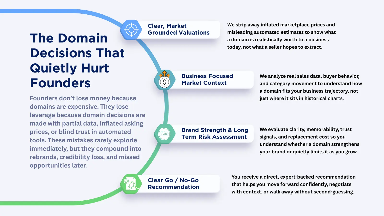 Built for High-Stakes Decisions We provide data-backed domain evaluations focused on brand credibility, capital efficiency, and defensibility. We exist for the founder who knows that a domain is not just a URL—it is the foundation of your company's future valuation. We turn "asking prices" into "investable data."